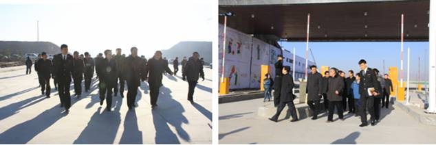 在保稅物流中心卡口上方"青海曹家堡保稅物流中心"以中英文兩種字體呈現(xiàn),海關(guān)標(biāo)識(shí)赫然醒目。王黎明副省長(zhǎng)一行在實(shí)地查看了1#、2#保稅倉(cāng)庫(kù)、卡口、查驗(yàn)庫(kù)、辦事大廳等設(shè)施,并邊走邊聽取物產(chǎn)集團(tuán)總經(jīng)理王玉輝關(guān)于工程施工進(jìn)展情況的匯報(bào)。