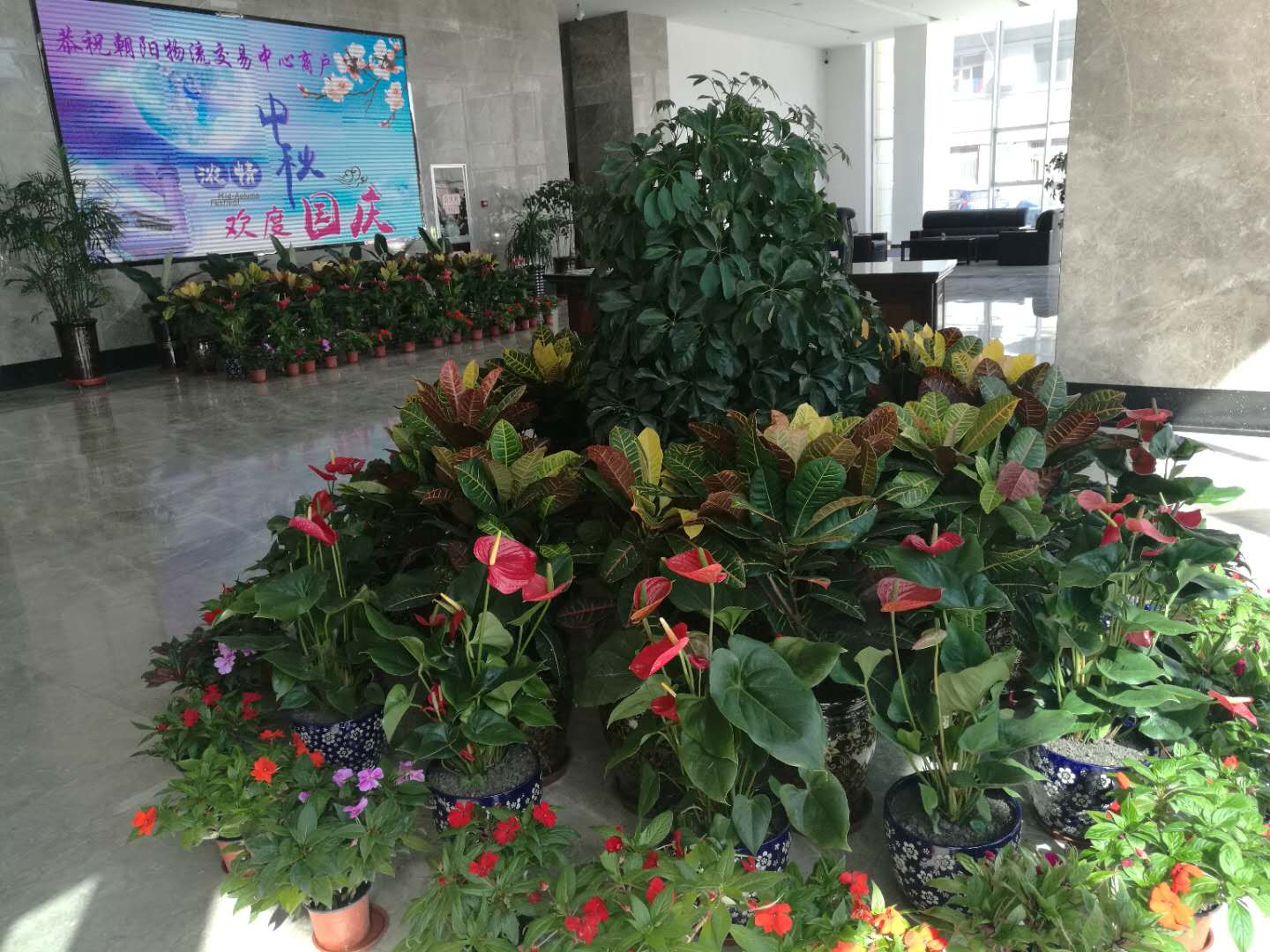 (朝物開投 訊 戴韻禮/文攝)為慶祝建國68周年,朝陽物流開發(fā)投資有限公司開展"喜迎國慶,歡度中秋"的準備工作。我公司在物產(chǎn)大廈門前紛紛懸掛起國旗和大紅燈籠,營造喜慶祥和的節(jié)日氣氛。在樓內(nèi)大廳擺放鮮花,迎接國慶節(jié)的到來。把黨的關心和關懷傳達到每一名員工,讓全體員工都能感受到公司"大家庭"的溫暖。也為喜迎黨的十九大勝利召開做好前期宣傳工作。