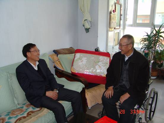 2013年1月28日,春節(jié)來(lái)臨之際,省委組織部王志明副部長(zhǎng)在省國(guó)資委黨委副書(shū)記毛占彪、物產(chǎn)集團(tuán)領(lǐng)導(dǎo)白家林、王仁芬的陪同下,走訪(fǎng)慰問(wèn)了集團(tuán)系統(tǒng)生活困難老黨員肖振東。王志明副部長(zhǎng)親切地詢(xún)問(wèn)肖振東的身體狀況、生活和家庭情況,發(fā)放了慰問(wèn)金和慰問(wèn)品,并希望他保重身體,愉快安度晚年。老黨員肖振東激動(dòng)地表示感謝黨組織的關(guān)懷,感謝上級(jí)領(lǐng)導(dǎo)的關(guān)心!