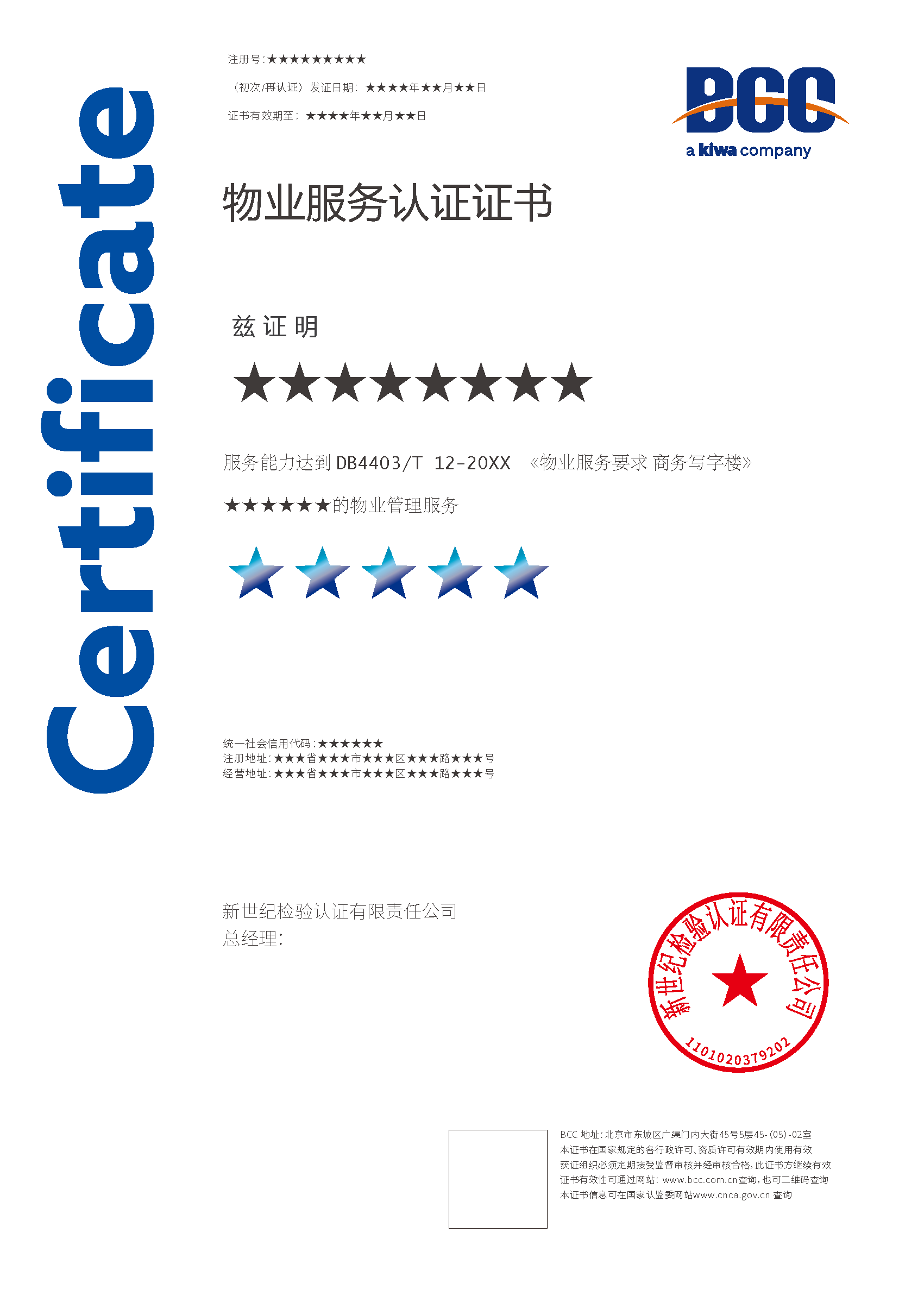 本頁(yè)涉及的認(rèn)證服務(wù)中均有對(duì)應(yīng)的《認(rèn)證實(shí)施規(guī)則》,BCC擁有其最終解釋權(quán)。任何組織及個(gè)人未經(jīng)BCC許可,不得以任何形式全部或部分使用(法律要求除外)認(rèn)證相關(guān)信息。如需獲取相關(guān)實(shí)施規(guī)則請(qǐng)用以下方式聯(lián)系獲?。弘娫挘?10-58579316   郵箱:fwjs@kiwa.cn