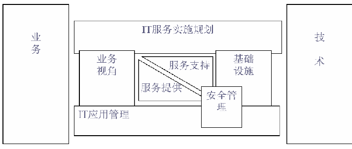 IT 服務(wù)實(shí)施規(guī)劃處于整個(gè)結(jié)構(gòu)的最高層,功能是對框架內(nèi) 6 大模塊開展各項(xiàng)工作進(jìn)行指導(dǎo),幫助用戶分析現(xiàn)有情況,協(xié)助設(shè)定發(fā)展戰(zhàn)略與目標(biāo),同時(shí)在實(shí)踐中對完成的工作進(jìn)行評測,給出調(diào)整意見。